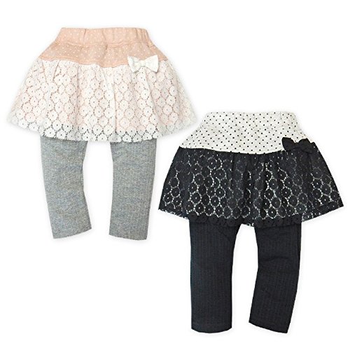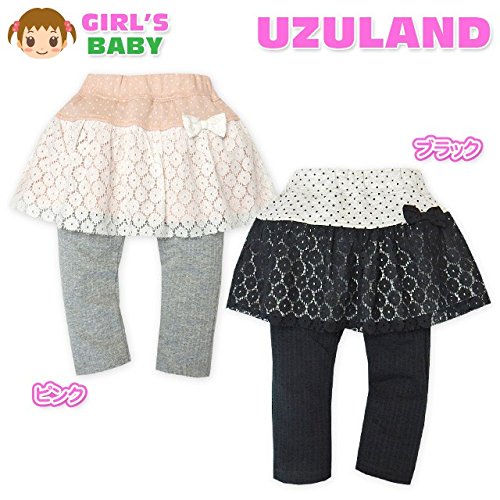 (ピンク/95cm)ベビー服 女の子 スカッツ スカート スパッツ UZULAND ウズランド ボトム 重ね着風 ジャガード天竺 レース リボン ウエストゴム 女児 ベビー