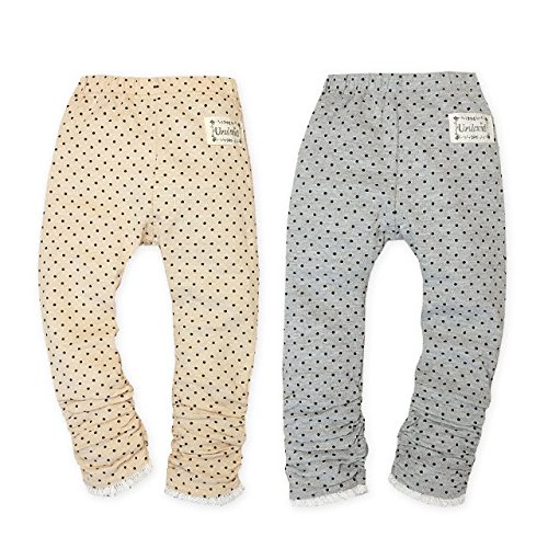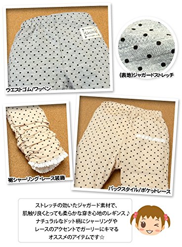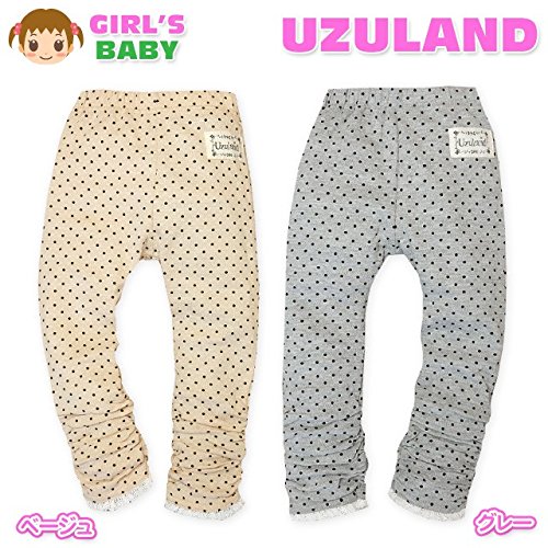 (グレー/80cm)ベビー服 女の子 レギンス ボトム UZULAND ウズランド ジャガードストレッチ ドット柄 シャーリング レース ウエストゴム 女児 ベビー