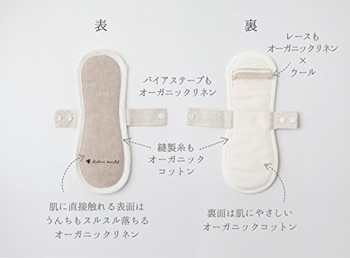 オーガニックリネンを使い、 オーガニック今治タオル×2枚入り、 しかも、2段階スナップボタンの ストラップ付き仕様のため、若干ほかの替えナプキンより 原材料と手間がかかるため、高いですが、 長く使えるのでおすすめです♪