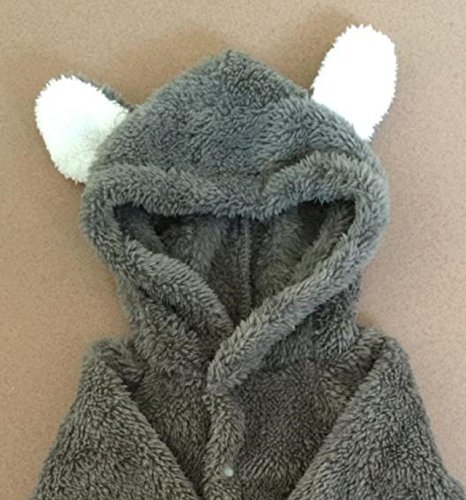 かわいい耳付 シッポ付き ベビー 用 きぐるみ ロンパース 軽くて ふわふわ 防寒 暖かい 敏感肌の 赤ちゃんに アウター インナー 出産祝い (80㎝(9-12ヶ月), グレー)