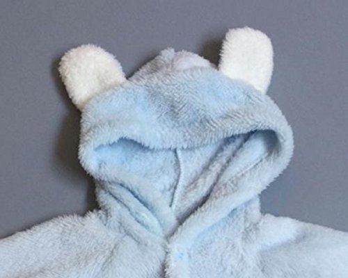 かわいい耳付 シッポ付き ベビー 用 きぐるみ ロンパース 軽くて ふわふわ 防寒 暖かい 敏感肌の 赤ちゃんに アウター インナー 出産祝い (65㎝(3-6ヶ月), ブルー)