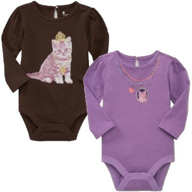 baby GAP キャット グラフィック ロンパース 長袖(パープル・ブラウン)【6ヶ月~2歳】(並行輸入品) (3, ブラウン)