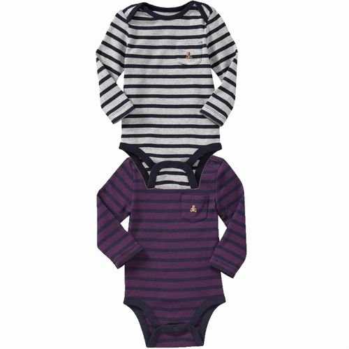 GAP(ギャップ)baby GAP ポケット付き ボーダー ロンパース 長袖 (グレー・パープル)【月齢:6ヶ月~1歳】(並行輸入品) (6-12M(6ヶ月~1歳), グレー)