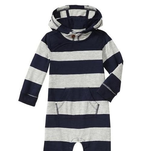 GAP(ギャップ)baby GAP フード付き ボーダー カバーオール リブ付き(ネイビー×グレー)【月齢:3ヶ月~1歳半】(並行輸入品) (6-12M(6ヶ月~12ヶ月), ネイビー×グレー)