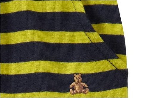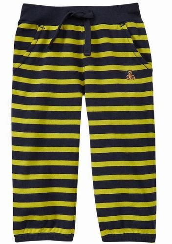 ●オールコットン仕様で、柔らかく動きやすさ抜群です。生地厚は普通です。ウエストが総ゴムで裾も総ゴムになっております。ボーダーマリンデザインでクマさんのロゴ刺繍入りで大満足間違い無し。
