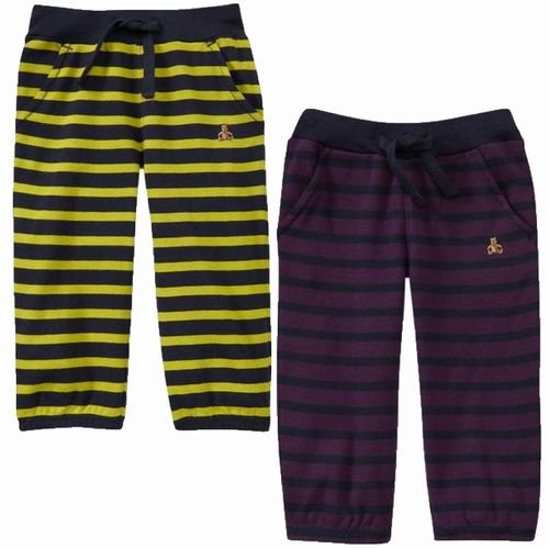 GAP (ギャップ) baby GAP コットン ボーダー パンツ(グリーン・パープル)【月齢:6ヶ月~2歳】(並行輸入品) (12-18M(1歳~1歳半), グリーン)