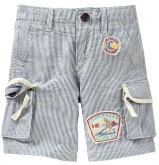 ●細い縦じまとパッチワッペンが付いていてお洒落なハーフパンツです。