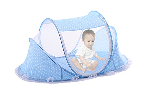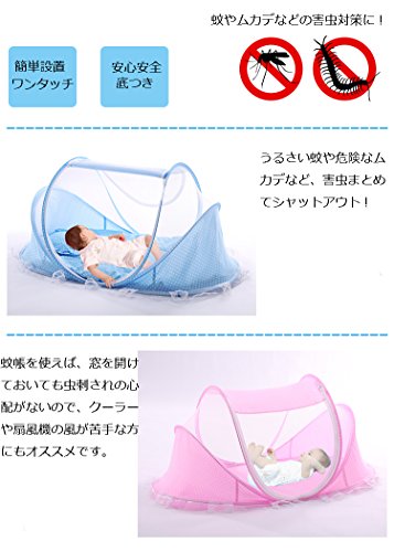 HIMOE 折りたたみ式蚊帳 ムカデや蚊 対策に/ワンタッチ/子供用ワンタッチ蚊帳 キッズ/ベビー コンパクト/収納 折りたたみ (ブルー)