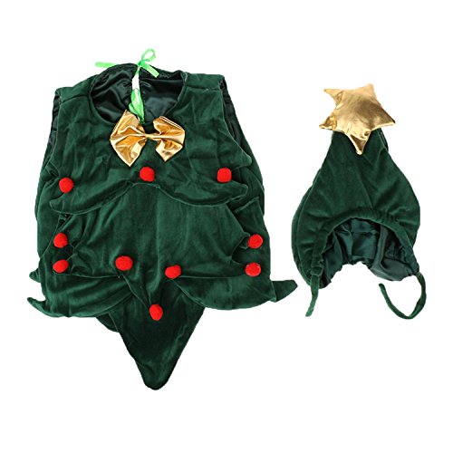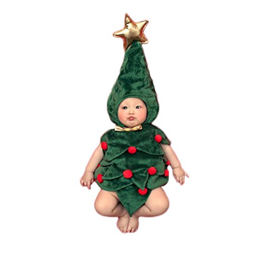 HIMOE 赤ちゃん クリスマスツリー柄 着ぐるみと帽子2点セット 寝相アート 撮影 記念写真 出産お祝い 誕生記念 (フリーサイズ(年齢対象:0ヶ月~6ヶ月))