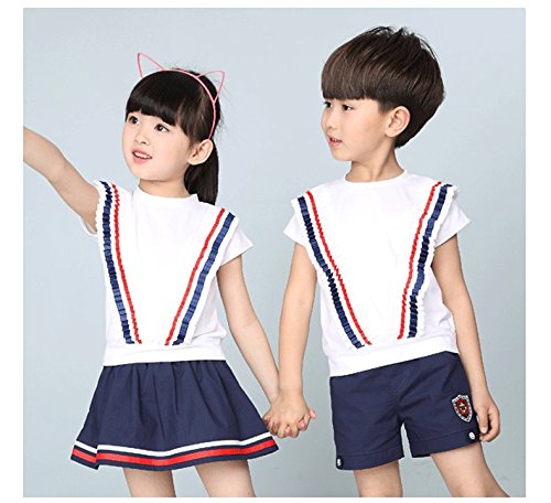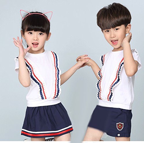 HIMOE男の子/女の子 半袖 夏用 下上セット スクール かわいい キュート 普段着 通学 入学 入園 演出 (140サイズ, 女の子)