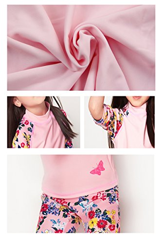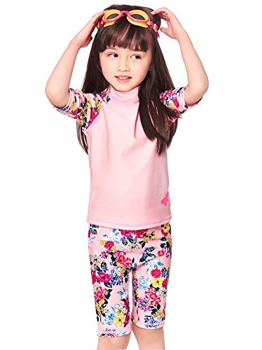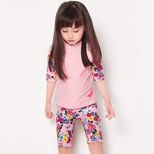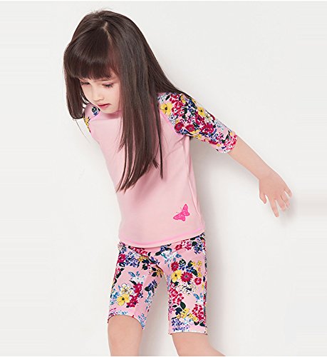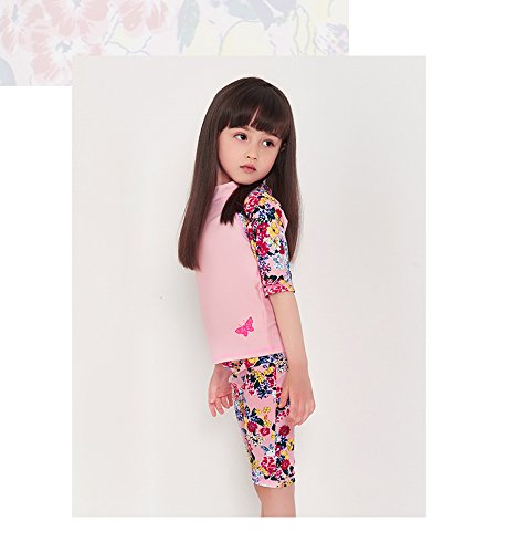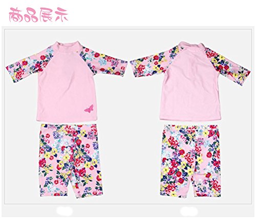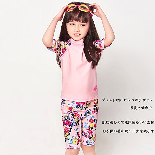 HIMOE 水着 女の子 ベビー プリント柄 2点セット 6分袖 キッズ水着 スクール水着 スイムウエア 撮影服 紫外線対策 UVカット コスチューム (140サイズ)