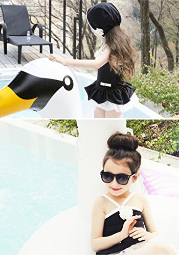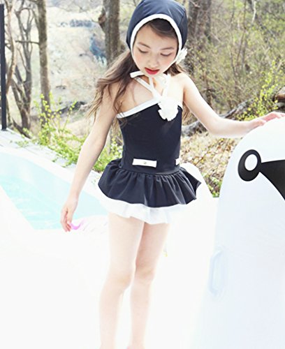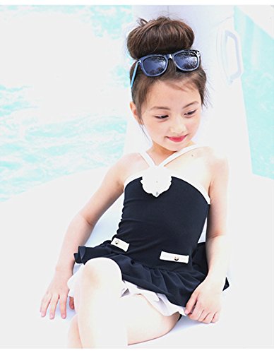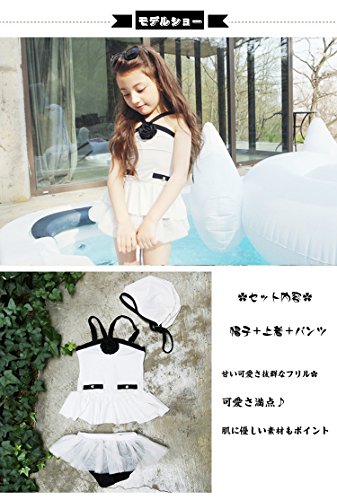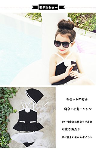 HIMOE 水着 女の子 キャミソール風 3点セット キッズ水着 スクール水着 スイムウエア 撮影服 紫外線対策 UVカット コスチューム (100サイズ, ブラック)