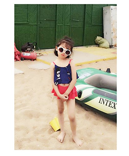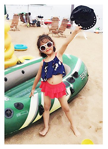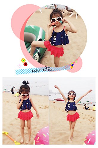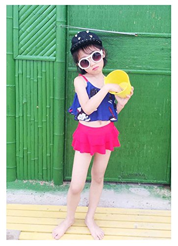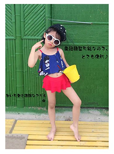 HIMOE 水着 女の子 ベビー フリル キャミソール風 2点セット キッズ水着 スクール水着 スイムウエア 撮影服 紫外線対策 UVカット コスチューム (L, ネイビー)