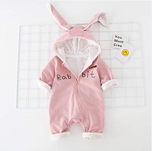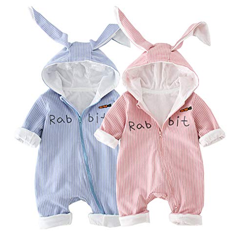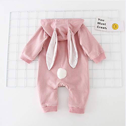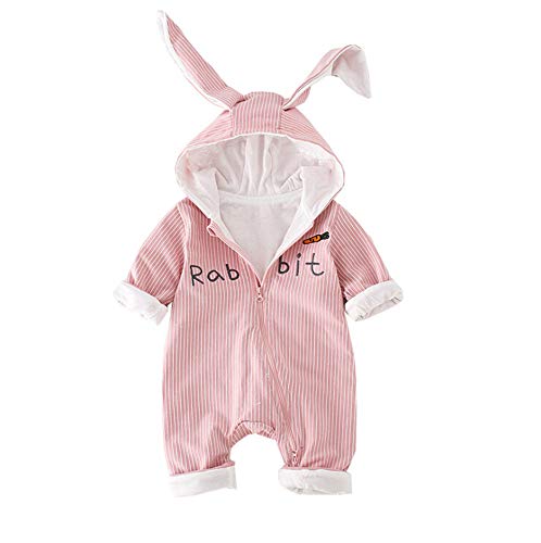 HIMOE ベビー服 赤ちゃん着ぐるみ カバーオール フード付き うさぎ耳ロンパース 前開き 長袖 男の子 女の子 コットン (90cm,ピンク)