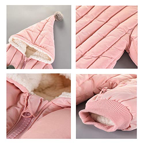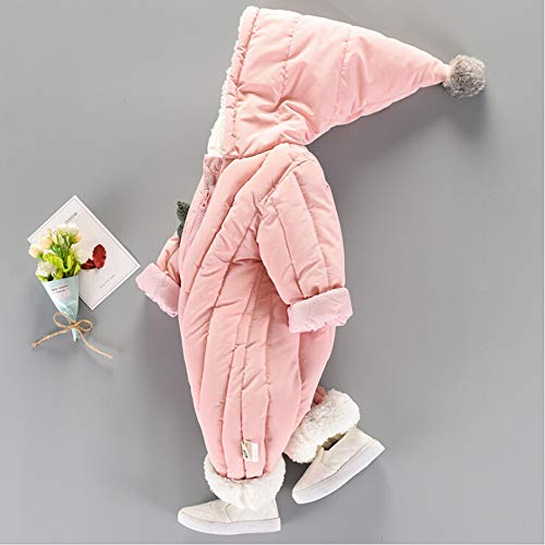 HIMOE 着ぐるみ もこもこ 子供用 ベビー服 赤ちゃん着ぐるみ カバーオール フード付き ロンパース 前開き 長袖 男の子 女の子 厚手 ベビー 防寒 赤ちゃん キッズ 冬服 可愛い クリスマス ハロウィン 誕生日 (80cm,ピンク)