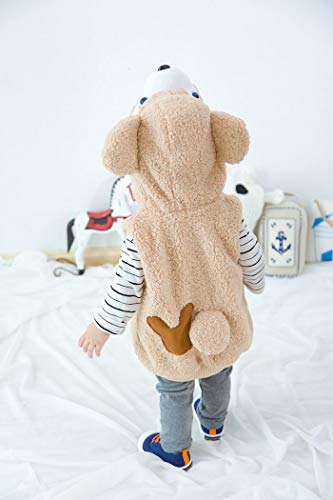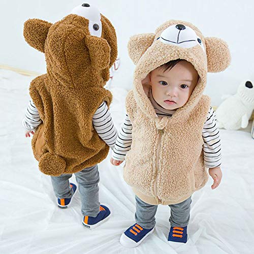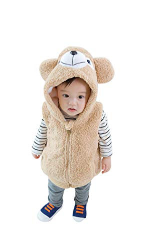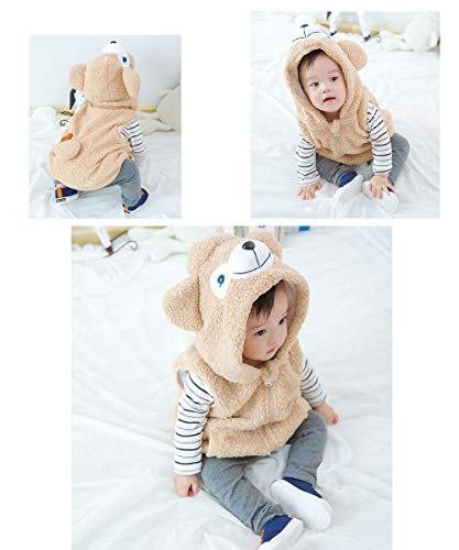 HIMOE ベビー服 子供服 ベスト フード付き 女の子 男の子 もこもこ 可愛い 秋 冬 幼児 歩行服 出産お祝い 記念日 プレゼント くま耳付き くま ブラウン ベージュ(80cm,ベージュ)