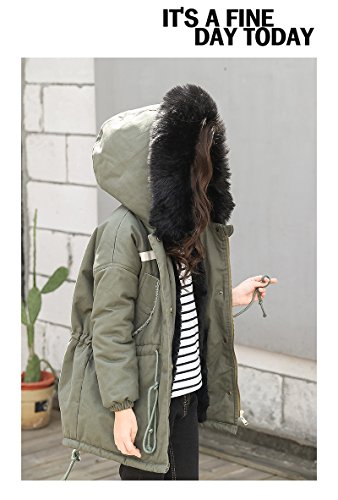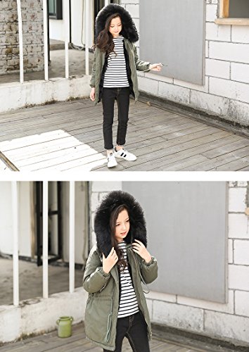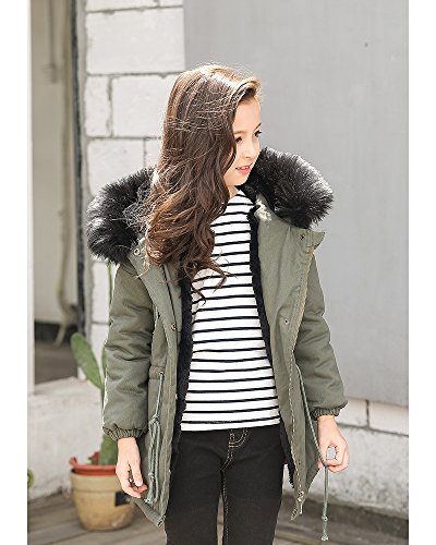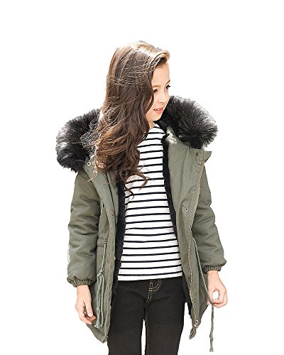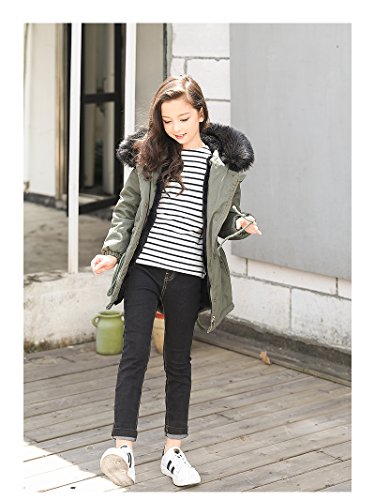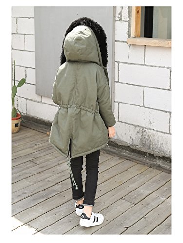 HIMOE 女の子 子供コート モッズコート 裏ボア ジャケット 中綿コート キッズコート 秋冬 キッズ服 ブラック 暖かい 保温 防寒 厚手 通学 アウター (オリーブグリーン, 170サイズ)