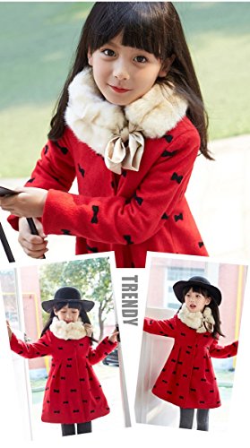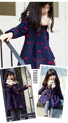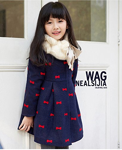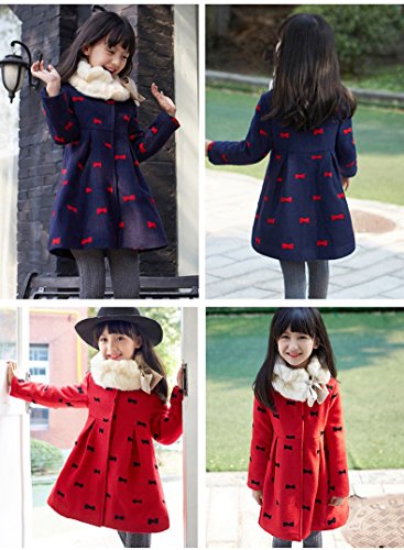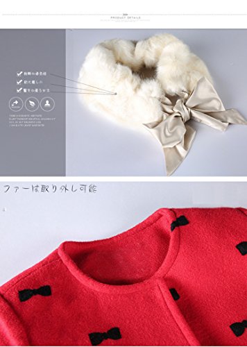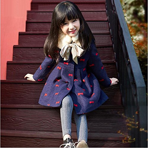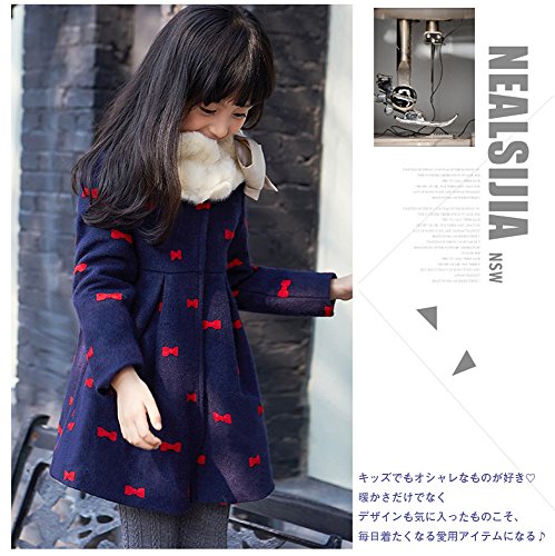 HIMOE ガールズ コート 蝶結び ダッフルコート キッズ 女の子 アウター 冬 ファー付き リボン柄 韓国 子供服 かわいい あったか (150#, ネイビー)