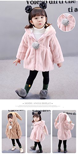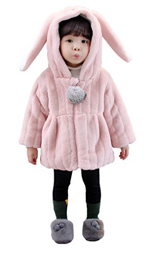 HIMOE ベビー コート うさぎ 耳 女の子 アウター フード付き パーカー 赤ちゃん 可愛い ウサギ耳 ベビー コスチューム おしゃれ ふわふわ 暖かい 秋冬 (100#, ピンク)