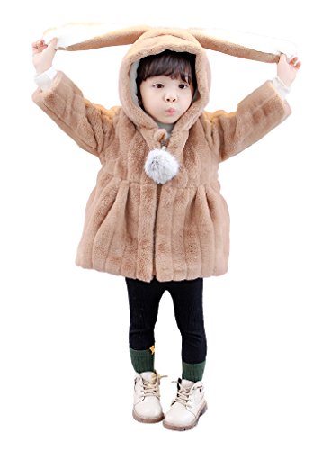 HIMOE ベビー コート うさぎ 耳 女の子 アウター フード付き パーカー 赤ちゃん 可愛い ウサギ耳 ベビー コスチューム おしゃれ ふわふわ 暖かい 秋冬 (90#, カーキ)