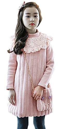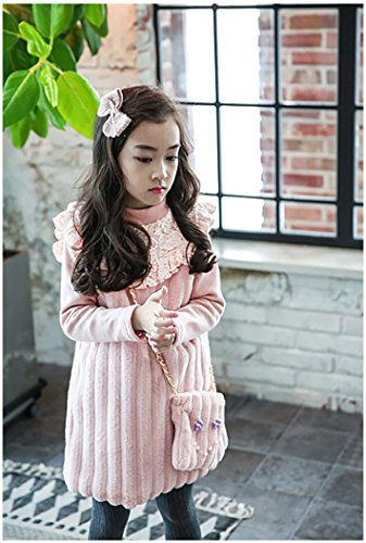 HIMOE 子供服 女の子 ワンピース 冬 裏起毛 長袖 トップス もこもこ ふわふわ あったか 保温 可愛い アウター (110サイズ, ピンク)