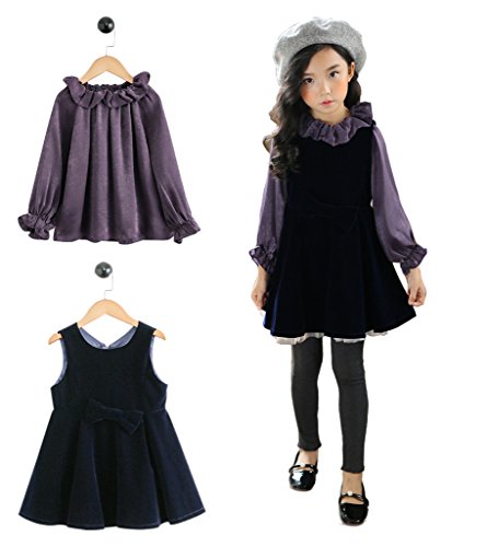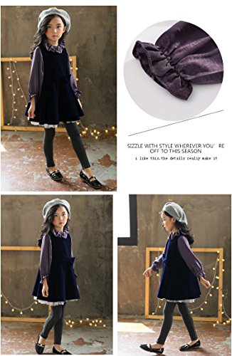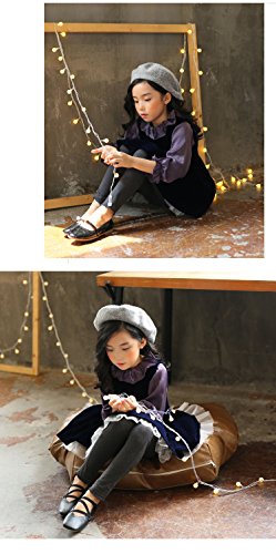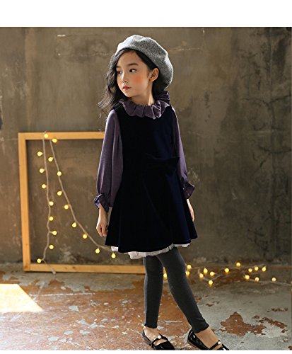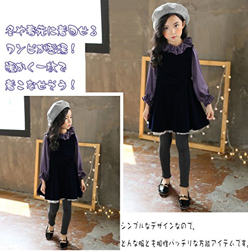 HIMOE ワンピース 子供 女の子 秋冬 フェイクレイヤードワンピース 長袖 襟付き レッグオブマトンスリーブ バルーンスカート 3点セット 韓国 可愛い (130サイズ)