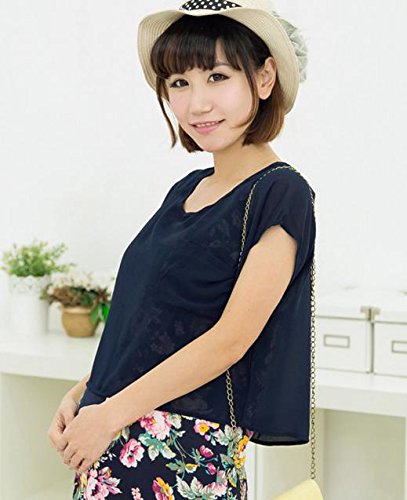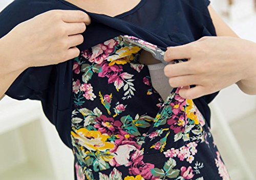 - ネイビー地に花柄模様がおしゃれなマタニティ服です。授乳口があるので、産前産後、着用いただけます。