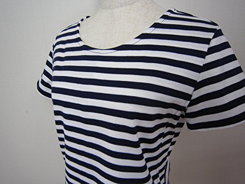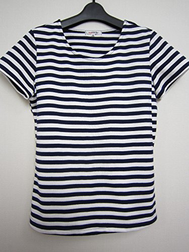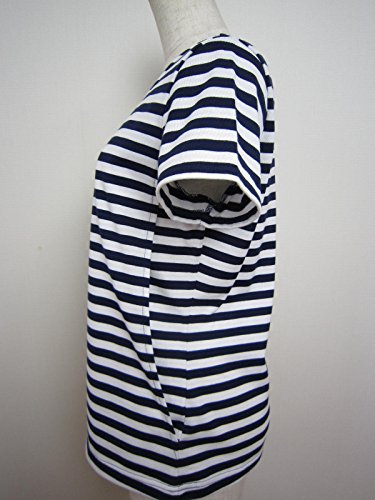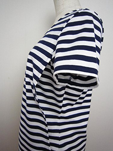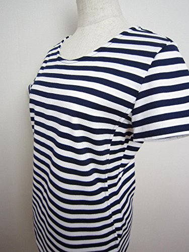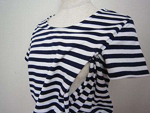 〔KAZU STYLE〕授乳ボーダーTシャツ 出産後用 日本製 (L オフ白Xネイビー)