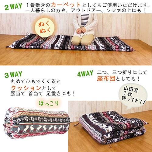 - ( ベンリなループ付 )紐と ループが2か所ついており、紐をループに結んで 固定 したら、 枕付のごろ寝布団 にもなります.丸めてもう一つのループで固定したら、クッション としてや 収納の時にも コンパクト です。2つ折り または, 3つ折り にして 座布団 としてや 丸め て紐で 固定 したら 腰当 首当て クッション 代わりと 色々 な使い方が可能です.