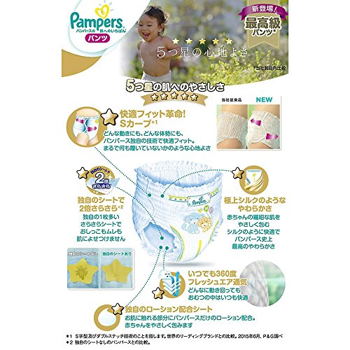5つ星の肌へのやさしさをご提供します。 快適フィット革命!Sカーブ・極上 シルクのようなやわらかさ 独自のローション配合シート・独自のシートで2倍さらさら ・いつでも360度フレッシュエア通気! 最高級パンツタイプ Mサイズ 42枚です。(体重6kg~10kg推奨) どんな動きにも、どんな体勢にも、パンパース独自の技術で快適フィット! (パッケージまたおむつデザインはメーカーの都合により予告なく変更になる場合がございます)
