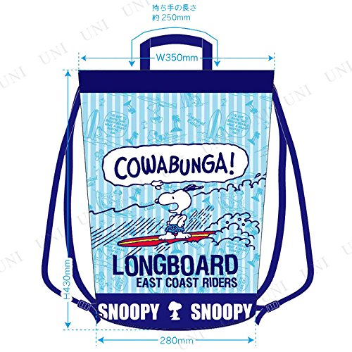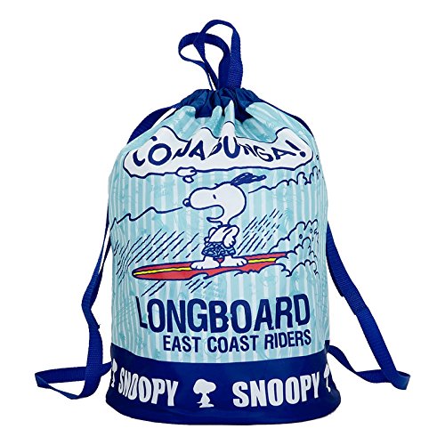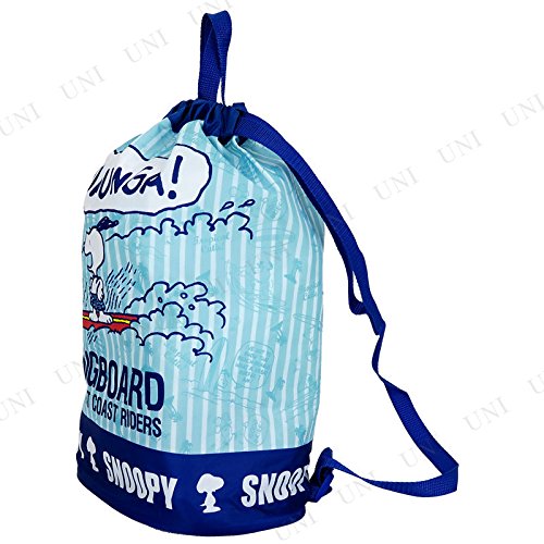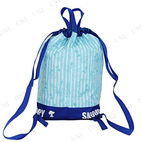 スヌーピーのナップサックです。夏らく可愛いデザインで、マチも広く荷物もたっぷりはいります。普段使いや、プールバッグにもおすすめです。アジャスターで肩紐の長さの調整も可能です。