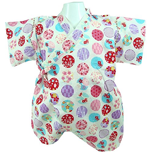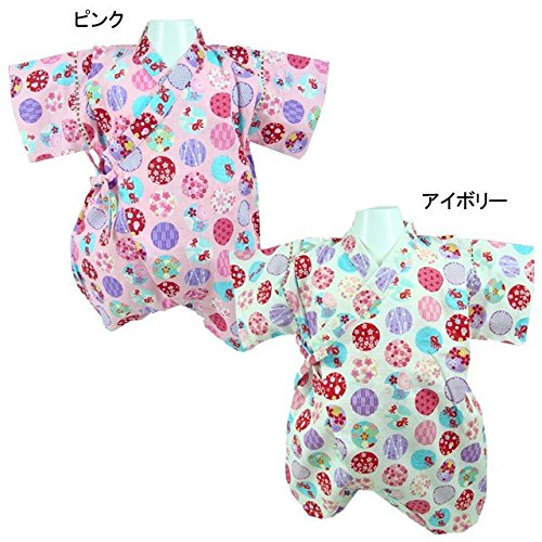 国産生地 水玉柄 甚平ロンパース 綿100% アイボリー◇70cm