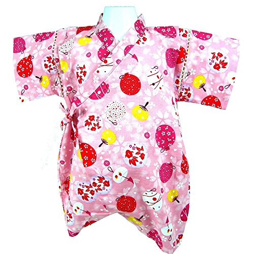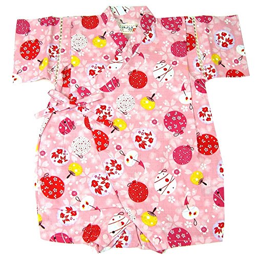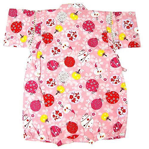 国産生地 水風船柄 甚平ロンパース 綿100% ピンク◇70cm