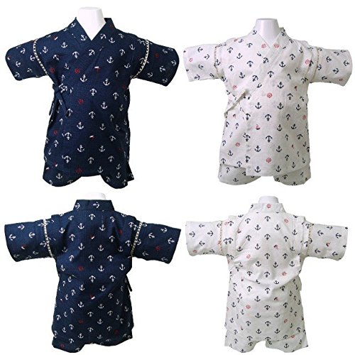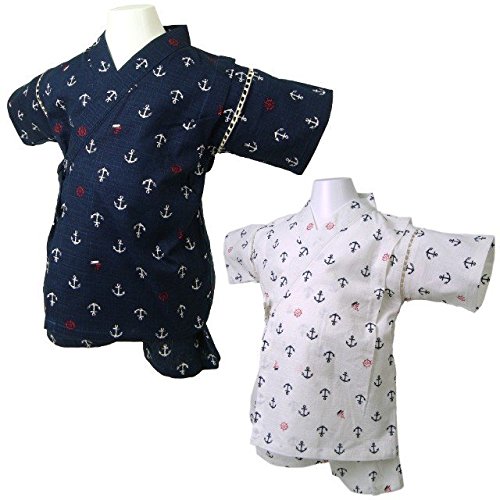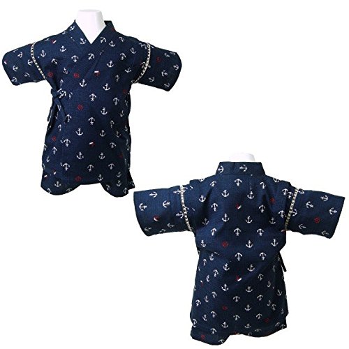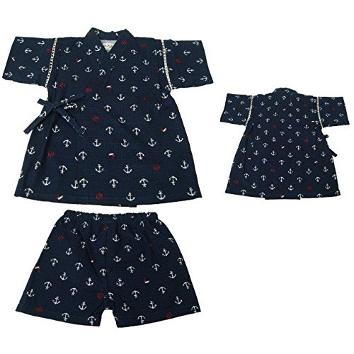 甚平 マリン柄 日本製生地 綿 100% ネイビー◇95cm
