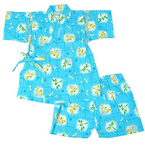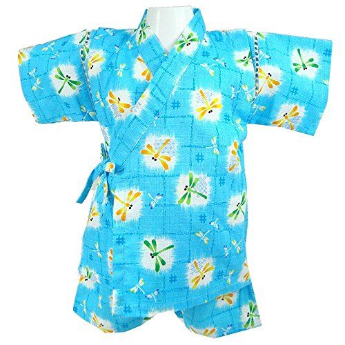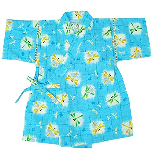 甚平 格子トンボ柄 日本製生地 綿 100% サックス◇95cm