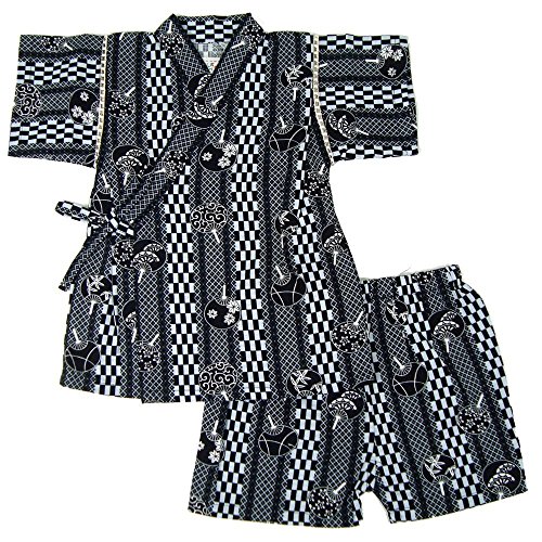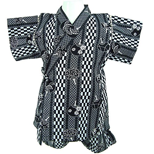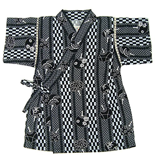 甚平 うちわ柄 日本製生地 綿 100% ブラック◇95cm