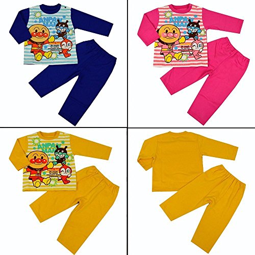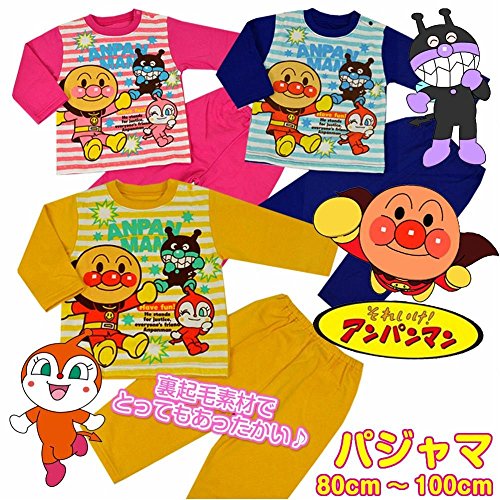 アンパンマン 3キャラ 裏起毛 長袖パジャマ イエロー◇80cm