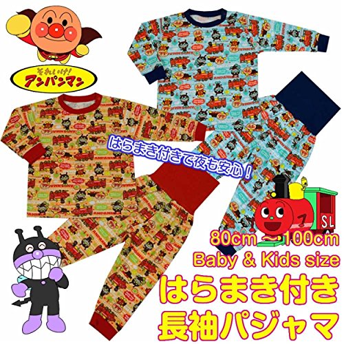 アンパン スムース総柄 腹巻付 長袖パジャマ レッド◇80cm