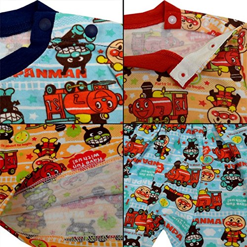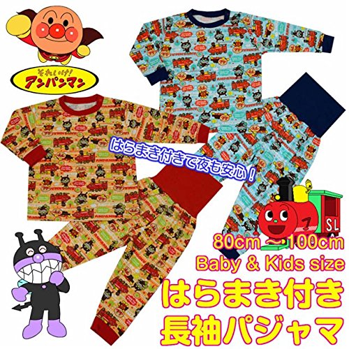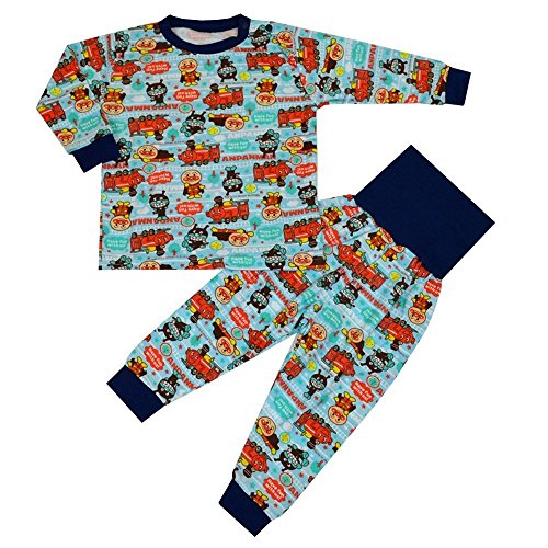 アンパン スムース総柄 腹巻付 長袖パジャマ ブルー◇90cm