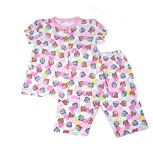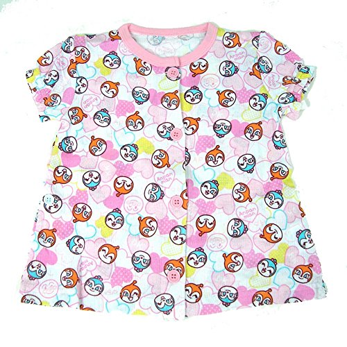 アンパン ニット楊柳 前開き総柄 半袖パジャマ ピンク◇80cm