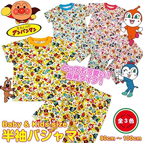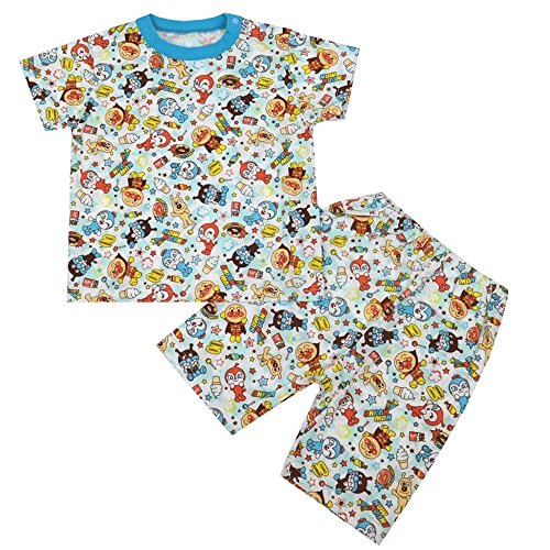 アンパン 天竺 半袖総柄パジャマ 綿100% サックス◇95cm
