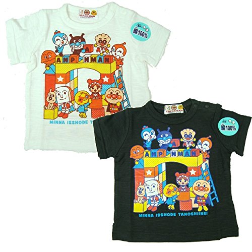 アンパン 天竺 ブロックプリント 半袖T 綿100 ブラック◇80cm