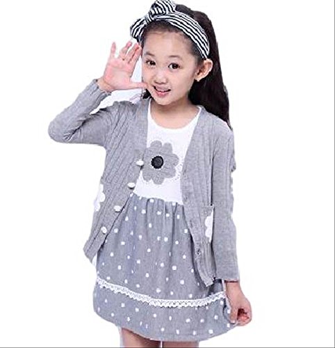 キッズ 春秋 ドレス ツーピース カジュアル おしゃれ 女の子 長袖 カーディガン (110cm, グレー)