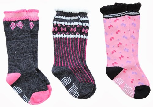 黒とピンクをベースにリボン柄を取り入れた3足組ソックスです