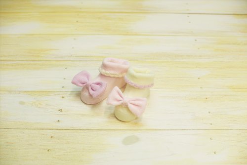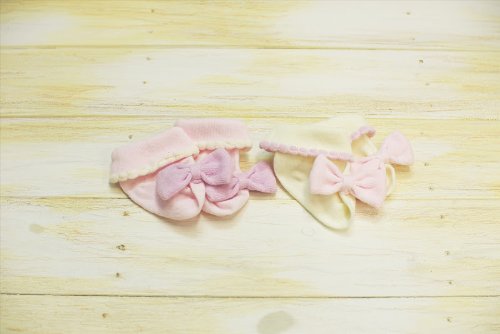 • 折り返し部分のピコットとつま先のリボンが魅力的!
