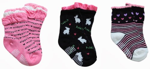 ピンクと黒を基調に可愛らしい3足組ソックスです