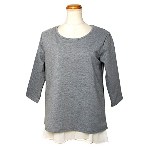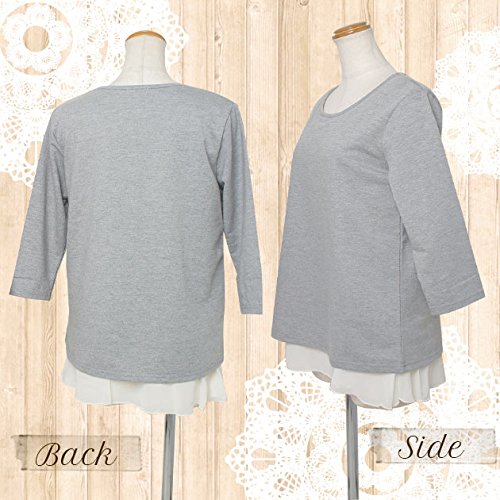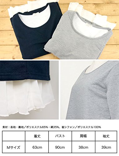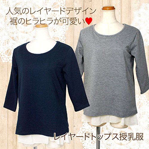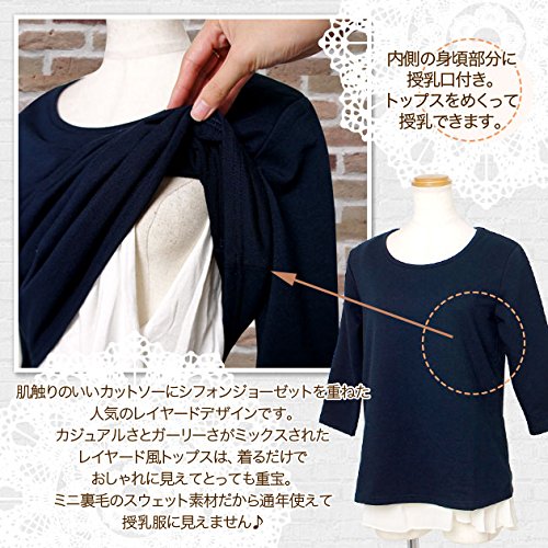【Mサイズ】着丈63cm バスト90cm 肩幅38cm 袖丈39cm 【仕様】内側の身頃部分に授乳口付き 肌触りのいいカットソーに、シフォンジョーゼットを重ねた 人気のレイヤードデザインです。 カジュアルさと、ガーリーさがミックスされた レイヤード風トップスは 着るだけで おしゃれに見えてとっても重宝。 ミニ裏毛のスウェット素材だから通年で使えて 授乳服に見えません♪