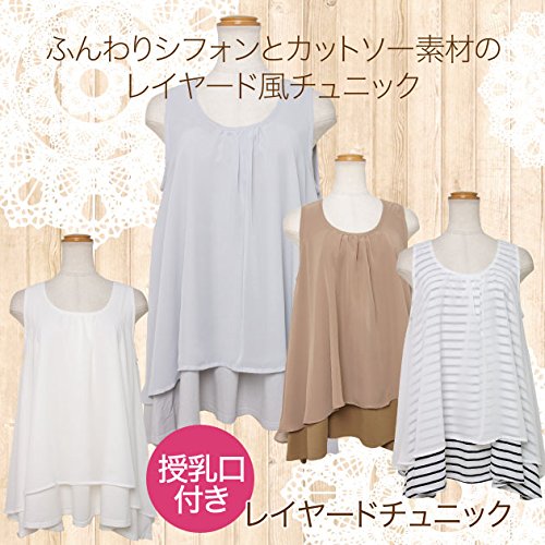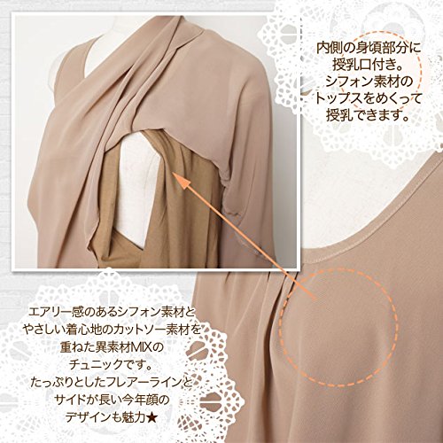【マタニティ】【授乳口付き】【トップス】シフォンレイヤー風チュニック (モカ)