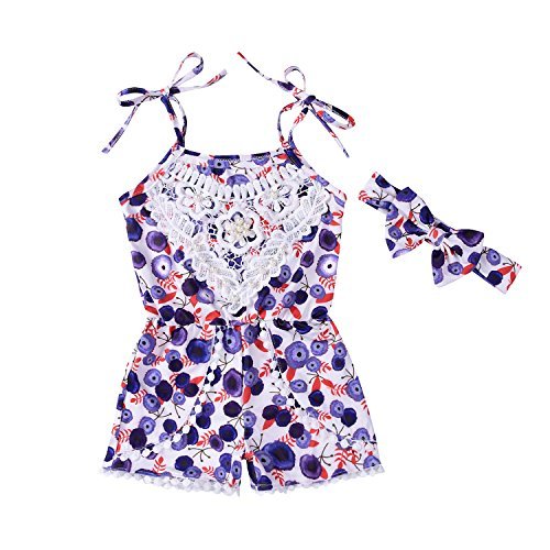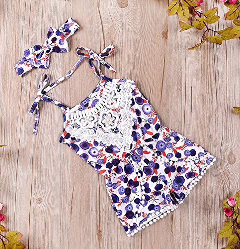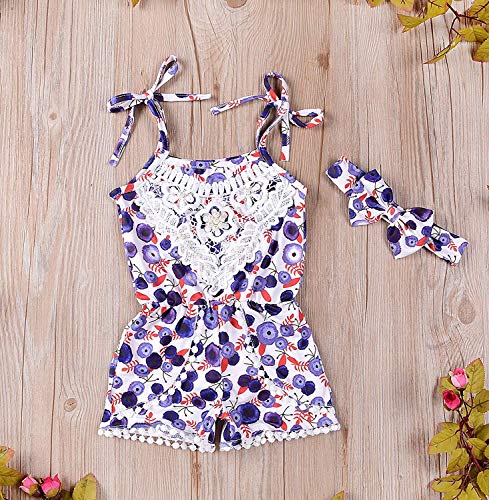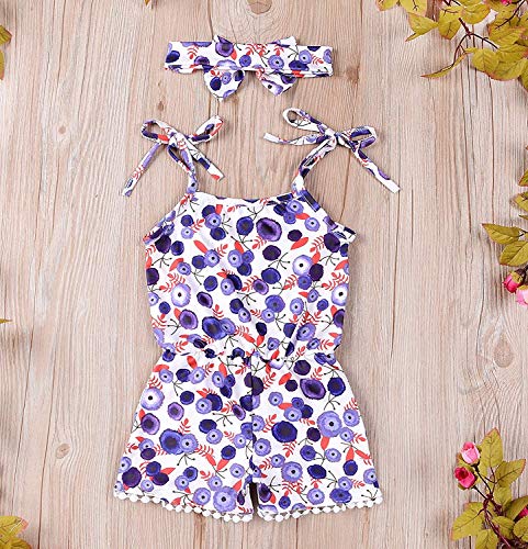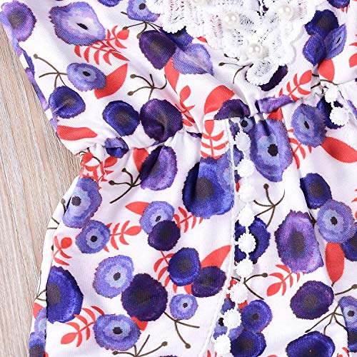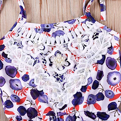 Younger Tree Newborn Baby Girls Print Ruffle Lace Sling Short Romper Sleeveless Bodysuit (Purple 100/18-24 Months) [並行輸入品]