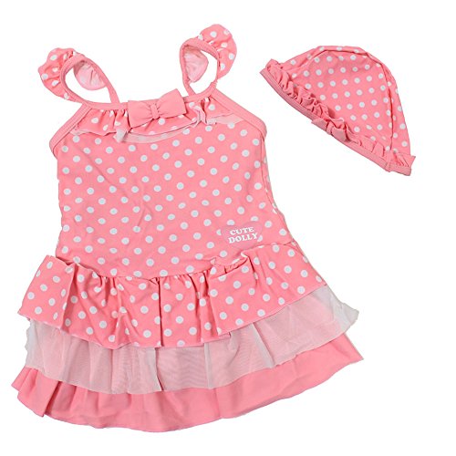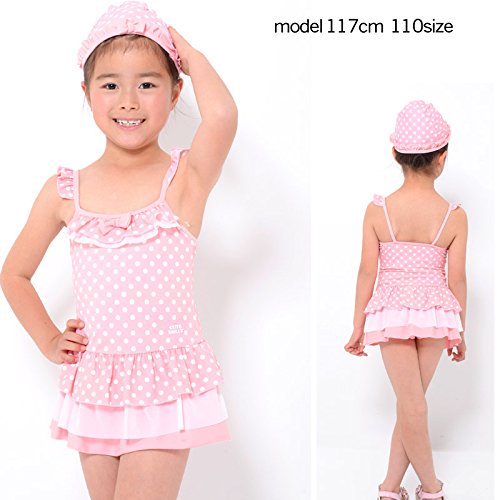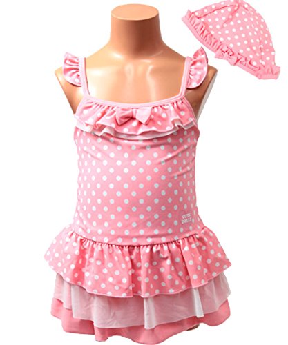 【152016/152853 〔UV加工〕女の子 水玉柄 チュールワンピース水着 キャップ付 90 95 110 120 130 】ピンク 90